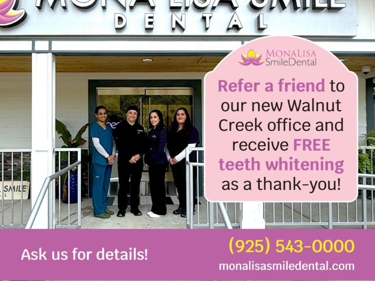 For almost 30 years, Mona Lisa Smile Dental has been a trusted fixture in the East Bay dental landscape, deeply rooted in the Walnut Creek, CA community and the surrounding region. What started as a vision to provide exceptional, patient-centered dental care has evolved into a cornerstone of oral health excellence, with Dr. Mohammad Khandaqji building lasting relationships with thousands of families across the area. Our longevity in this community is not simply a measure of time—it’s a testament to our unwavering commitment to our patients’ wellbeing and our dedication to being active, responsible members of the neighborhoods we serve.